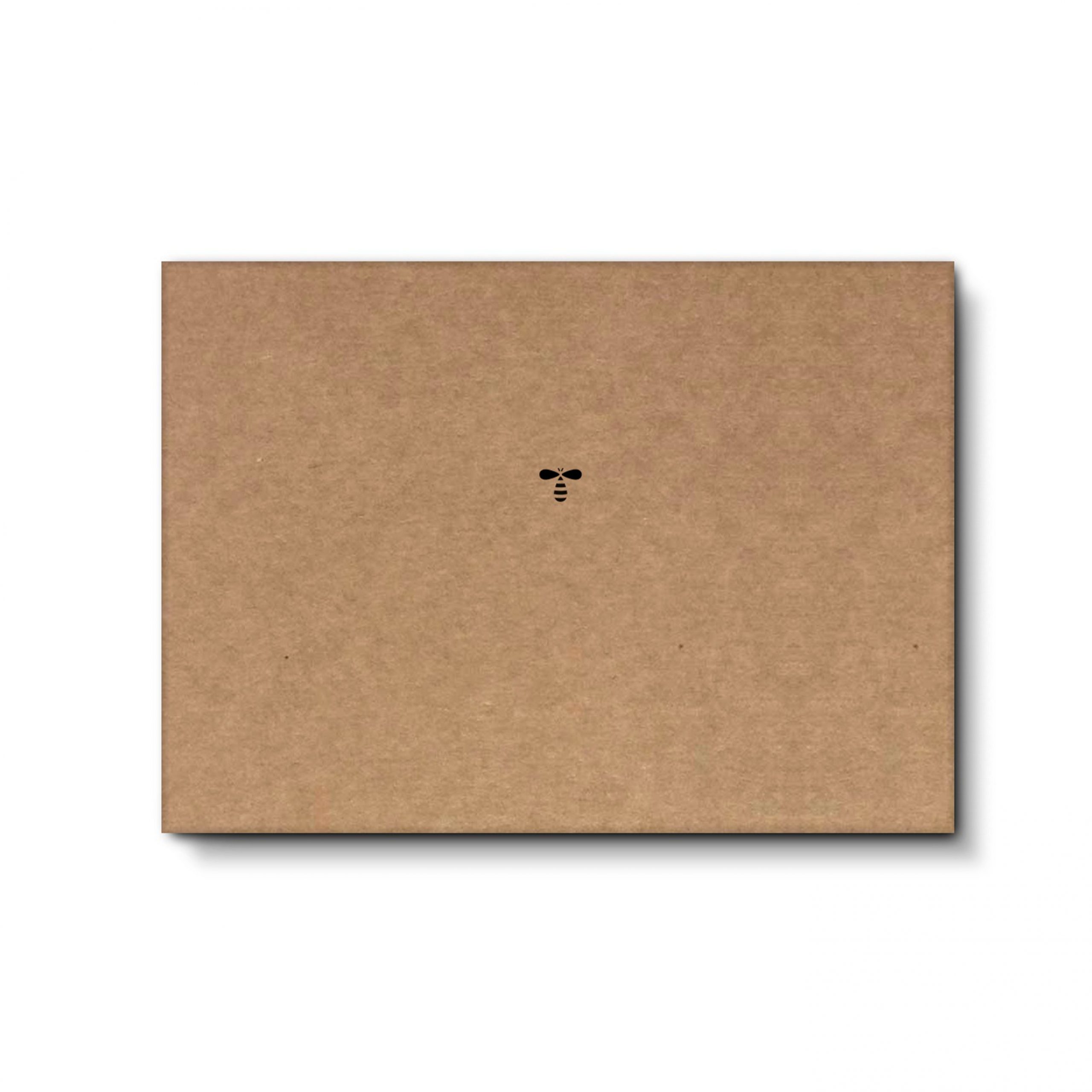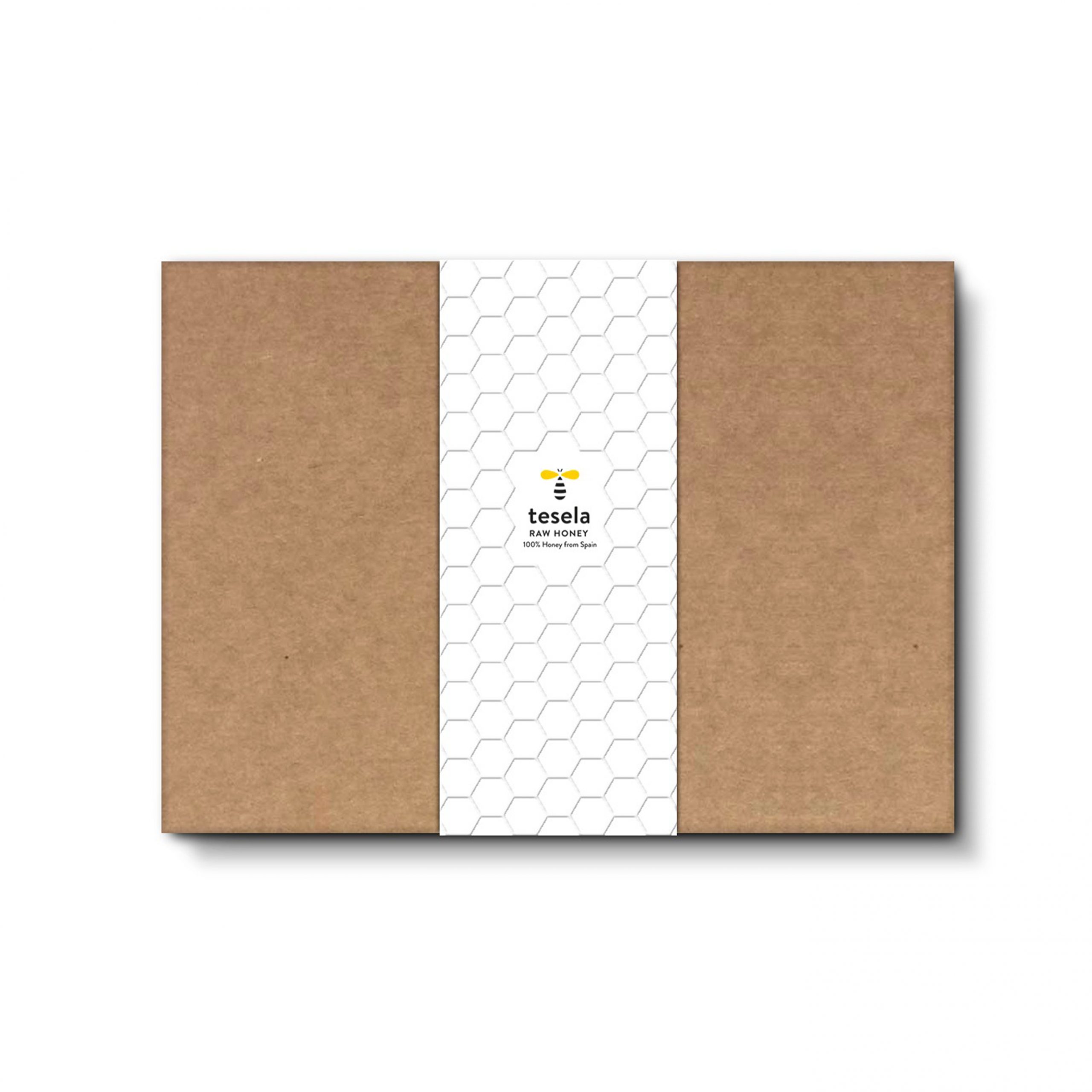 En el exterior de la caja, una faja de cartón, también con golpe seco, completa el diseño. Una vez finalizada la miel, la bonita y sencilla caja puede aprovecharse sin su faja para guardar fotos o recuerdos, conservando tan sólo el logo de la abeja y nuestro lema en su interior: Good for you, Good for the planet.
